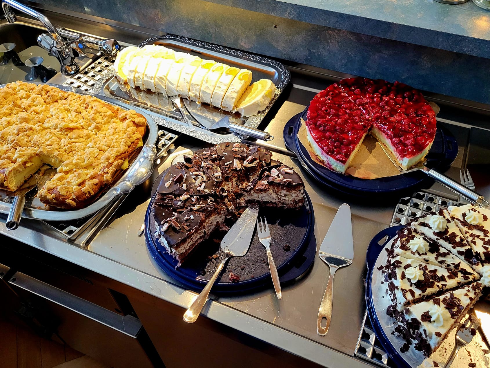 Das Angebot konnte sich sehen lassen: Neben Klassikern wie Schwarzwälder Kirsch- und Marmorkuchen standen auch eine fruchtige Himbeertorte, eine Zitronenrolle, ein gefüllter Streuselkuchen und ein bunter Multivitaminkuchen auf der Tafel. Kein Stück blieb übrig – selbst eine vorbeiziehende Wandergruppe ließ sich vom Licht in der Bürgerstube anlocken und stärkte sich vor dem Heimweg bei Kaffee und Kuchen.